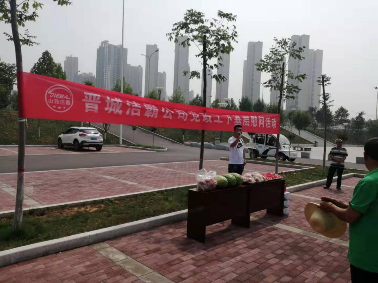 暑期盛夏,赤日炎炎7月19日上午,晉城潔霸公司黨政工暑期“情系一線”下基層慰問系列活動啟動。在工會主席崔偉同志率領下,慰問活動小組首站來到了晉城市帶狀公園,看望了辛勤奮戰(zhàn)在園林一線的員工,給員工送去了面包、西瓜、白糖等慰問品,表達了公司領導的親切關懷。