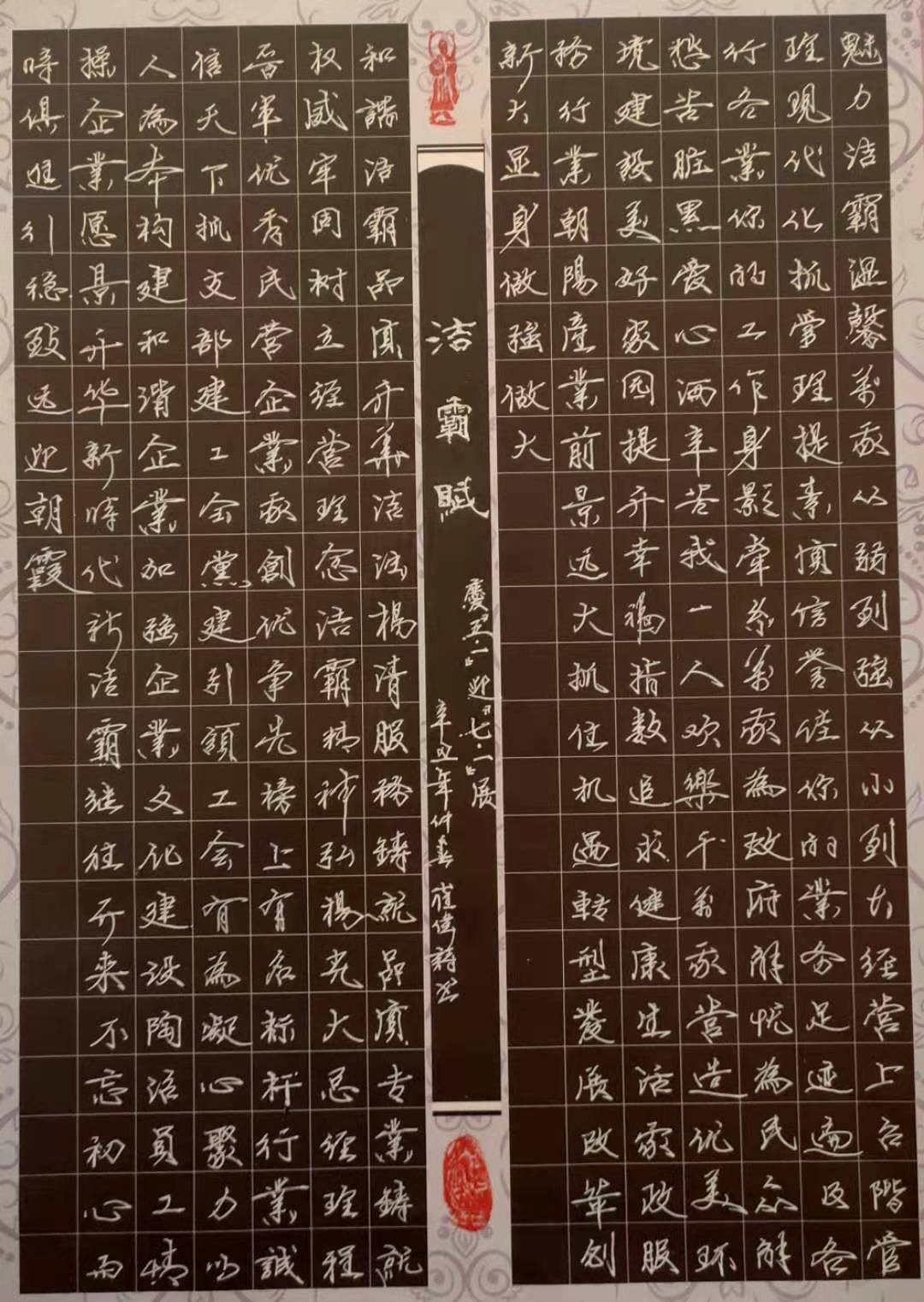 為迎接中國(guó)共產(chǎn)黨建黨100周年,弘揚(yáng)中華優(yōu)秀傳統(tǒng)文化,營(yíng)造濃厚的企業(yè)文化氛圍,五一前夕,晉城市潔霸清潔服務(wù)股份有限公司舉辦了“喜迎建黨百年華誕”硬筆書法比賽活動(dòng)。