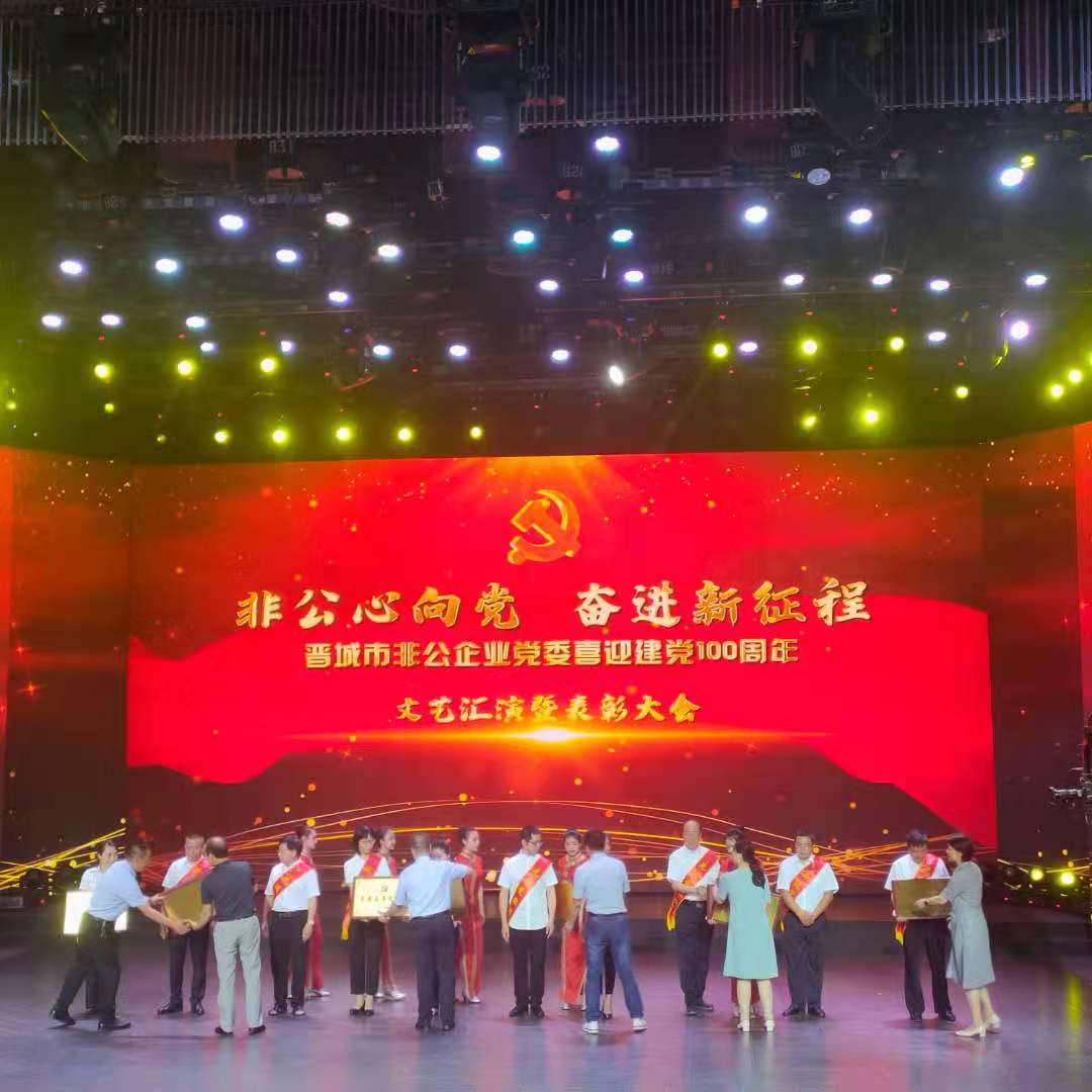 616午,晉城市非公企業(yè)黨委非公心向黨、奮進(jìn)新征程喜迎建黨100周年文藝匯演“兩優(yōu)一先”表彰大會晉城市新聞傳媒集團(tuán)演播大廳成功舉行。晉城市委組織部副部長、市委黨建辦主任杜琳、晉城市委非公和社會組織工委書記郎軍芳、晉城市市場監(jiān)管局黨組書記、局長,市非公企業(yè)黨委書記白亞平出席活動。