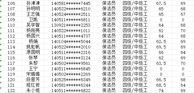 晉城市潔霸清潔服務(wù)股份有限公司職業(yè)技能等級認(rèn)定中心現(xiàn)將2024年1月20日認(rèn)定人員成績公示如下: