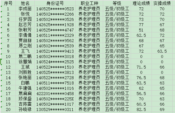 2024825日第31批養(yǎng)老護(hù)理員初級認(rèn)定人員成績公示